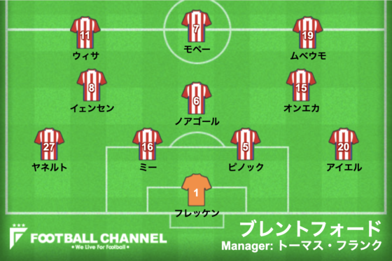 ブレントフォード、アーセナル戦の予想フォーメーション