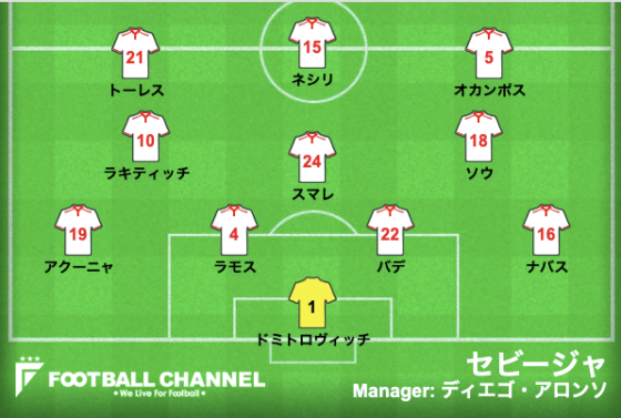 セビージャ、レアル・ソシエダ戦予想フォーメーション