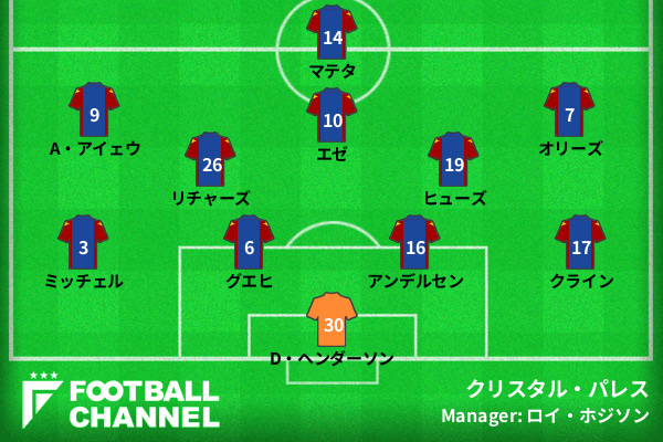 クリスタル・パレス、ブライトン戦の予想フォーメーション