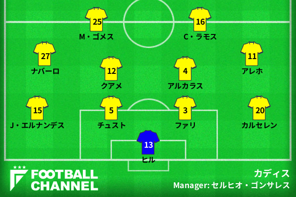 カディス、レアル・ソシエダ戦の予想フォーメーション