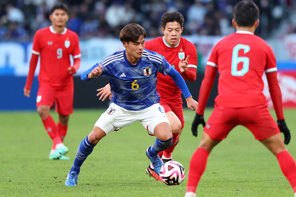 サッカー日本代表は1日、TOYO TIRES CUP 2024でタイ代表と対戦し、5-0で勝利した。初先発を果たした佐野海舟は持ち味のボール奪取のみならず、攻撃面でも成長の跡を感じさせた。AFCアジアカップにも選出された23歳は、日本代表に生き残るために必要なことを胸に留め、新たな武器をモノにしようともがく。(取材・文:藤江直人)