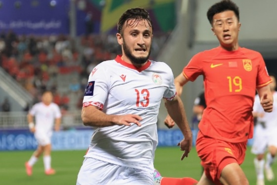 そんなポジティブな話題で溢れるタジキスタン代表だが、第2節カタール代表戦では物議を醸すシーンがあった。21歳の右WGアマドーニ・カモロフが相手選手に倒された後、その報復とばかりに違うカタール代表の選手の顎をスパイクで蹴り上げたのだ。