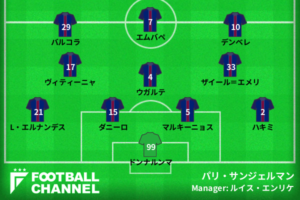 パリ・サンジェルマン、レアル・ソシエダ戦の予想フォーメーション