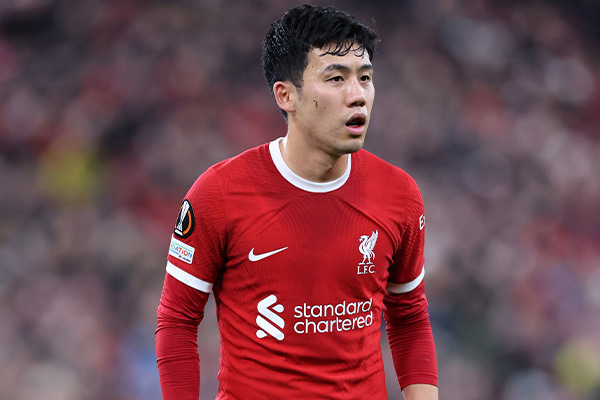 日本人サッカー選手の市場価値ランキングで10位にランクインしたのは、日本代表の絶対的キャプテン、遠藤航だ。シュトゥットガルト在籍時の遠藤の市場価値は650万ユーロ(約9億1000万円)であったが、リバプールに加入した直後の2023年9月に1300万ユーロ(約18億2000万円)へ倍増した。現在まで自己最高額となるその金額を維持している。