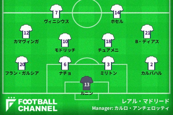 レアル・マドリード、レアル・ソシエダ戦の予想フォーメーション