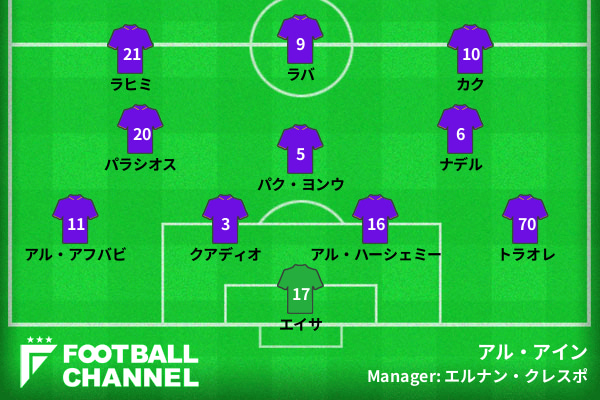 アル・アインの予想フォーメーション