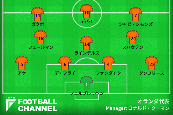 オランダ代表のスタメンは以下の通りだ。