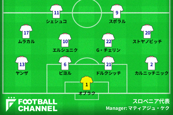 スロベニア代表のスタメンは以下の通りだ。
