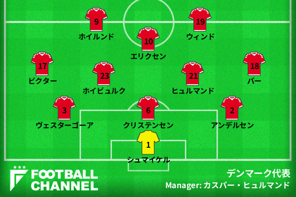 デンマーク代表の予想フォーメーション