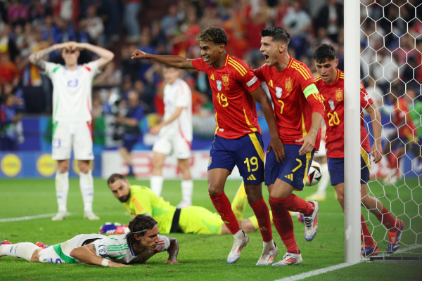 注目のビックマッチとなったスペイン代表対イタリア代表。最初に決定機を作ったのはスペインだった。左ウィングのニコ・ウィリアムズが縦に突破してからクロスを上げると、ペドリが頭で合わせる。しかし、これはイタリアの守護神ジャンルイジ・ドンナルンマが見事に防ぐ。その後も1対1のバトルで優位に立つN・ウィリアムズを中心に攻めるスペインが試合を優位に進めた。反対にイタリアは、決定機を作り出せないまま前半を終えた。後半も開始早々にペドリが決定機を迎えたが、これも決めきれない。そして迎えた54分に試合が動く。N・ウィリアムズの縦突破からのクロスをDFリッカルド・カラフィオーリがクリアしきれず、オウンゴール。スペインが待望の1点を奪う。このまま試合は終了し、スペイン代表が前回王者イタリア代表に勝利を収めた。