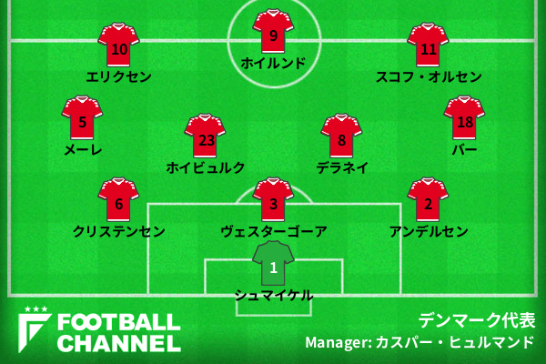 スタメンには、ラスムス・ホイルンドやクリスティアン・エリクセンが名を連ねる一方、ヨナス・ヴィンドなどが外れている。
