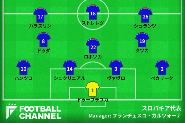 UEFAユーロ2024(EURO2024)・決勝トーナメント1回戦、イングランド代表対スロバキア代表が現地時間30日(日本時間7月1日 01:00KO)にフェルティンス・アレーナで行われる。この試合に先立ち、スロバキア代表のスターティングメンバーが発表されている。