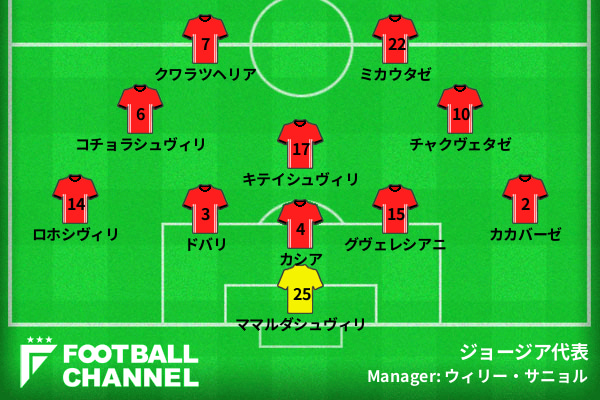 スタメンには、クヴィチャ・クワラツヘリアやジョージズ・ミカウタゼが名を連ねている。ポルトガル代表を倒した勢いのまま、スペイン代表撃破を狙う。