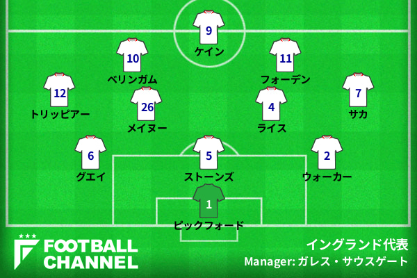 イングランド代表のスタメンは以下の通りだ。