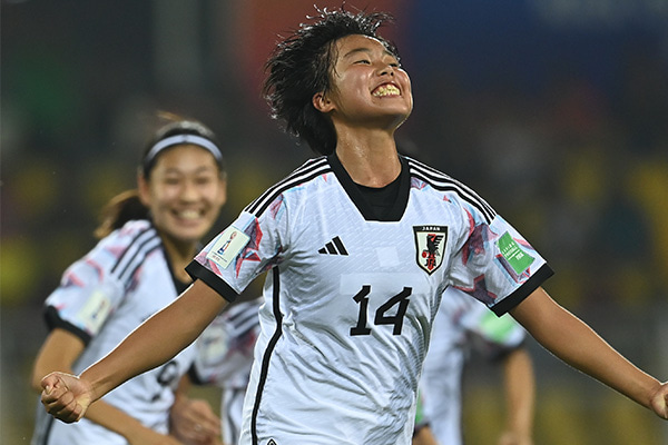 谷川も出場した2022FIFAU-17女子W杯で、リトルなでしこジャパン(U-17女子日本代表)は準々決勝でU-17スペイン女子代表と対戦。この試合の66分に谷川は相手陣内のセンターサークル付近から左足を振り抜くと、ボールはゴール右上隅に吸い込まれた。谷川の武器であるロングレンジからのシュートが活きたシーンだ。日本は谷川のスーパーゴールで先制に成功するも、その後87分に失点。後半アディショナルタイムに逆転ゴールを許し、ベスト8敗退となった。