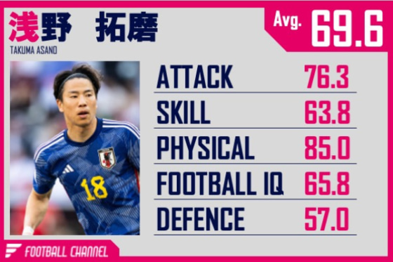 浅野の最大の武器はJリーグ時代から代名詞となっているスピードだ。味方選手からのロングボールに抜け出すことを得意としており、2022年のカタールワールドカップ(W杯)でドイツ代表相手に決めたゴールがその代表例だろう。トップスピードに到達するのが早く、相手DFが追いつく前にフィニシュへと持ち込む。こうした「フィジカル」はラ・リーガの舞台でも猛威を振るっている。