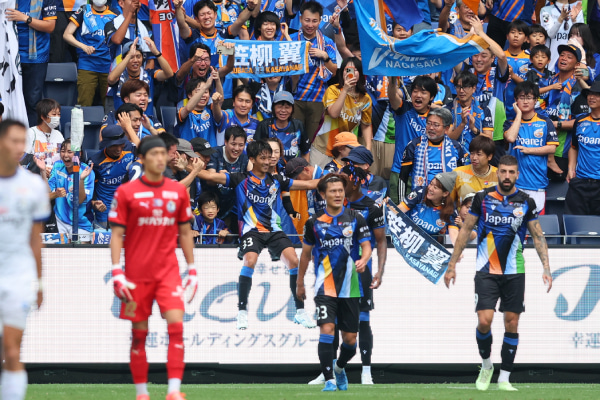 2万人収容のスタジアムには19,011人の観客が詰めかけた。ホームの大観衆を味方につけ長崎はゴールを連発。相手のミスを突き先制点を挙げると、2点、3点と得点を重ね、とどめの4点目を決めた笠柳翼がサポーターに囲まれ喜びを共有する場面も見られた。