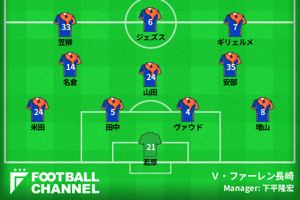 サッカー最新ニュース 1年前 V・ファーレン長崎対ベガルタ仙台、予想スタメン&フォーメーション。J2トップ脅威の長崎攻撃陣を仙台はどう止めるか text by 編集部 photo by Getty Images V・ファーレン長崎の予想フォーメーション V・ファーレン長崎、ベガルタ仙台戦の予想フォーメーション ▽GK 21 若原智哉 ▽DF 24 増山朝陽 4 ヴァウド 5 田中隼人 23 米田隼也 ▽MF 24 山田陸 35 安部大晴 14 名倉巧 ▽FW 7 ギリェルメ 33 笠柳翼 6 ジェズス 【次ページ】ベガルタ仙台の予想スタメン J1 J2 J3 Jリーグ コラム サッカー ニュース 日本 明治安田Jリーグ 1 2 3 4