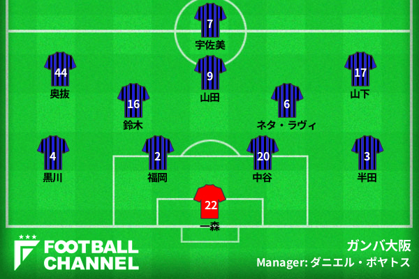 ガンバ大阪の予想フォーメーション
