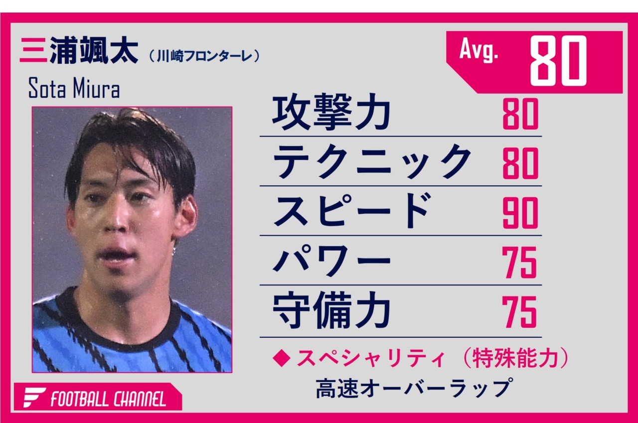 能力値:80(攻撃力80、テクニック80、スピード90、パワー75、守備力75)