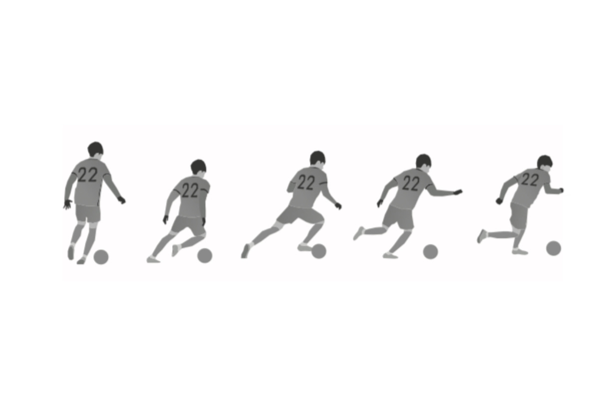 180度の反転では、クッと沈み込んでステップを刻みながら上半身の向きを変えていく必要があり、両側の股関節回旋の連動がポイントになります。三笘の場合、素早い反転からの鋭い加速、という連続的な動きになっています。