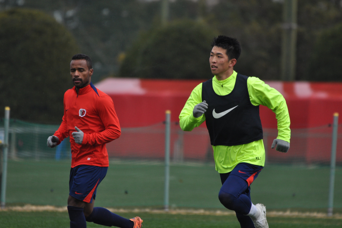 トレーニングする鹿島アントラーズの選手たち