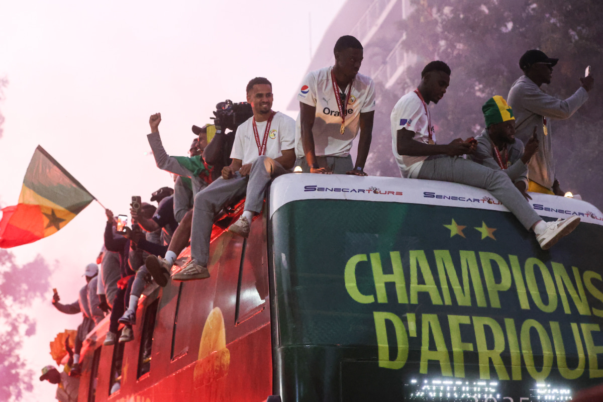 クラブや代表のユニフォームに身を包んだファンが通りを埋め尽くす中、選手たちはバスの上から手を振り、アフリカ杯制覇の喜びを共有した。