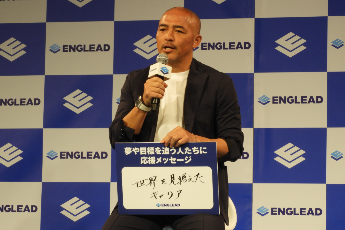 ENGLEADのパネルを持つ小野伸二氏