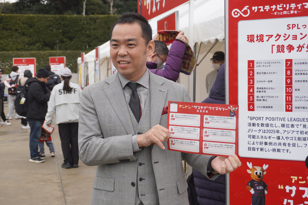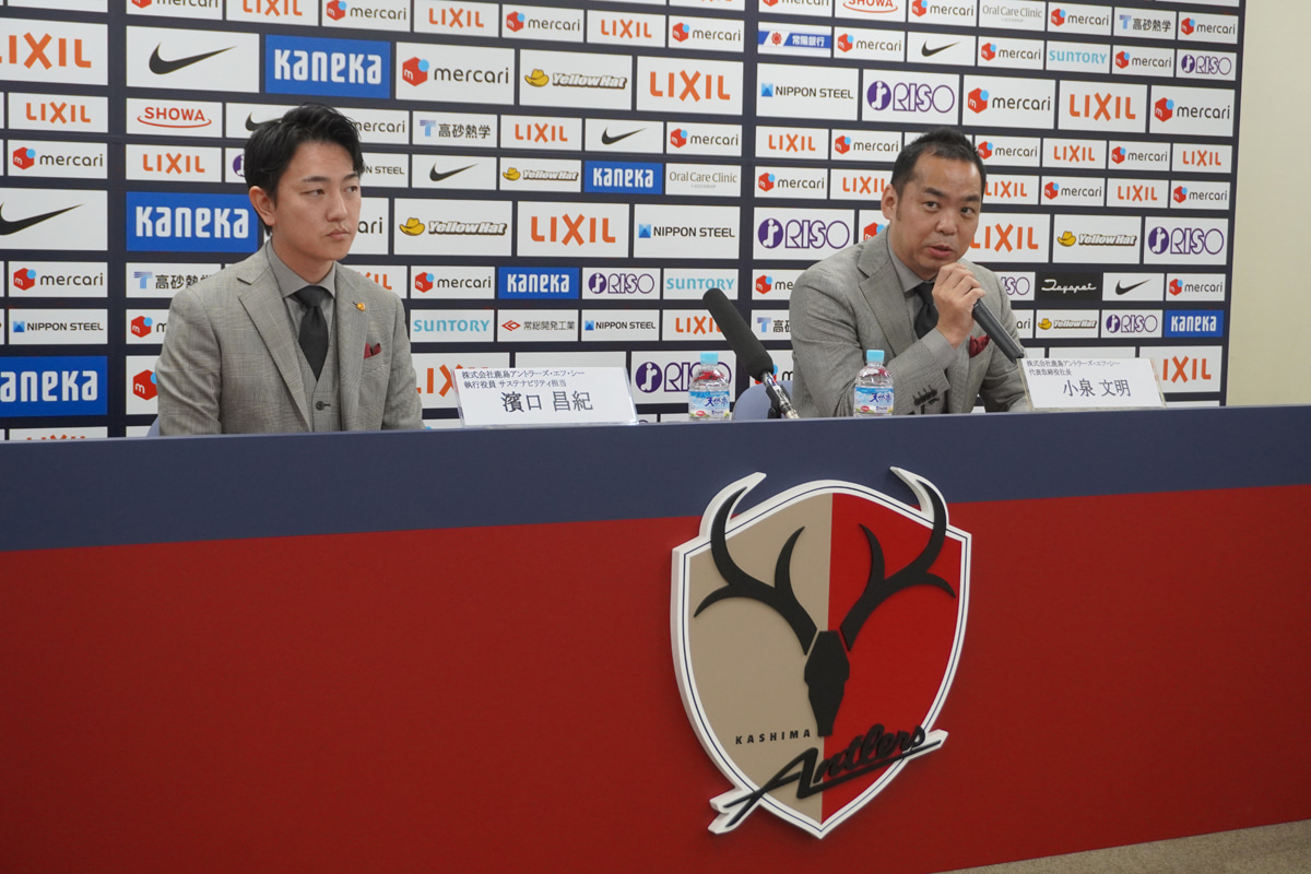 21日にメルカリスタジアムで行われた明治安田J1百年構想リーグ地域リーグラウンド第3節・鹿島アントラーズ対柏レイソルは「サステナビリティマッチ~ずっと同じ夢を~」として開催された。試合前に行われた会見に登壇した小泉文明社長と濱口昌紀執行役員は、この方針が持つ意義を語っている。(取材・文:加藤健一)[1/2ページ]
