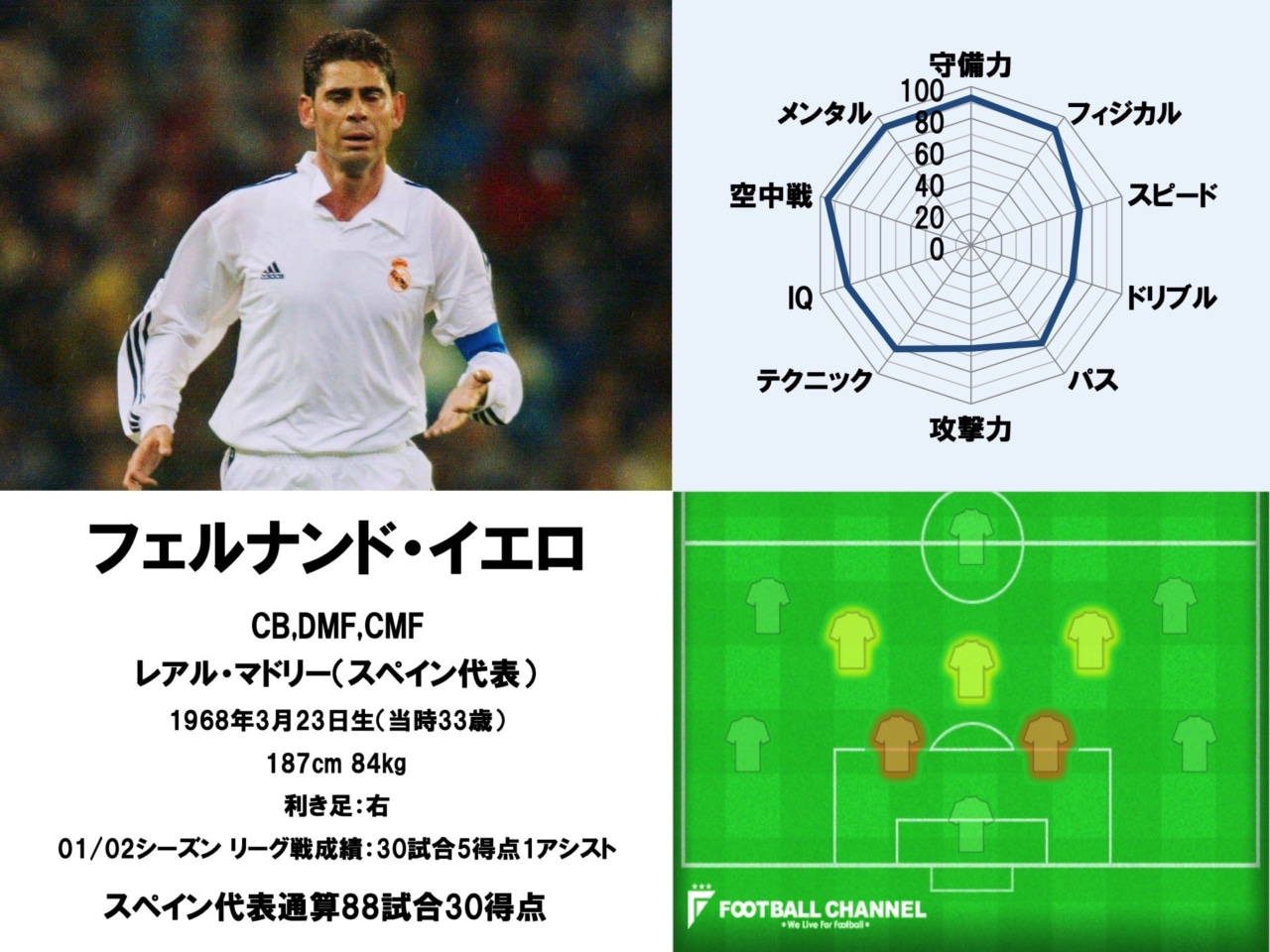 基本データの対象となっている01/02シーズンはリーグ戦30試合、CLは14試合に出場し、まさに精神的支柱として欧州制覇に導いた存在だった。
