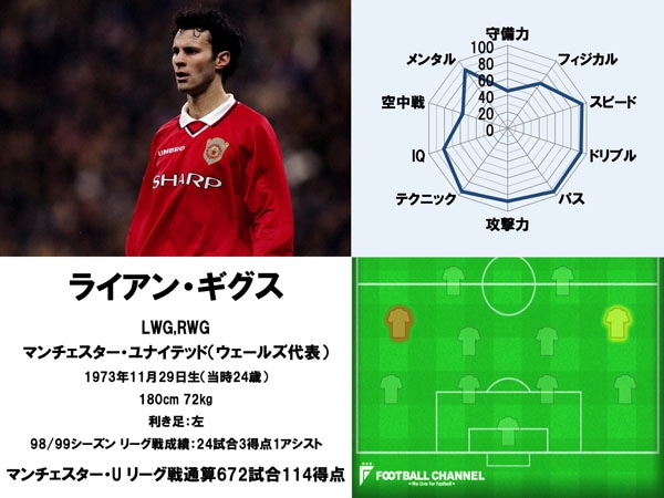 さらにギグスは「パス」と「テクニック」でも90を超える数値を記録した。