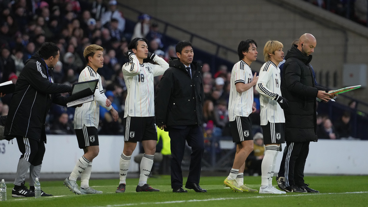 3月28日のスコットランド戦、森保監督は3-1-4-2という攻撃的フォーメーションを採用した。攻撃の厚みをもたらすという点では機能した一方で、守備面では選手間にズレが生じ、一部の選手から戸惑いの声が聞かれた。