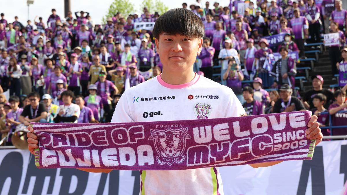 藤枝MYFCは18日、明治安田J2・J3百年構想リーグ・地域リーグラウンド第11節でヴァンフォーレ甲府と対戦し、1-0で快勝した。この試合では、明治大学出身ルーキーのFW真鍋隼虎が決勝ゴールをマーク。FWらしい見事な一撃だった。