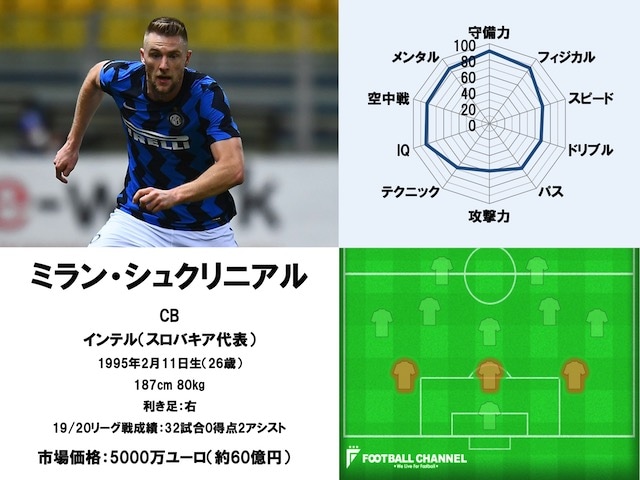 20/21サッカー選手能力値ランキング78位。DFミラン・シュクリニアル(インテル)