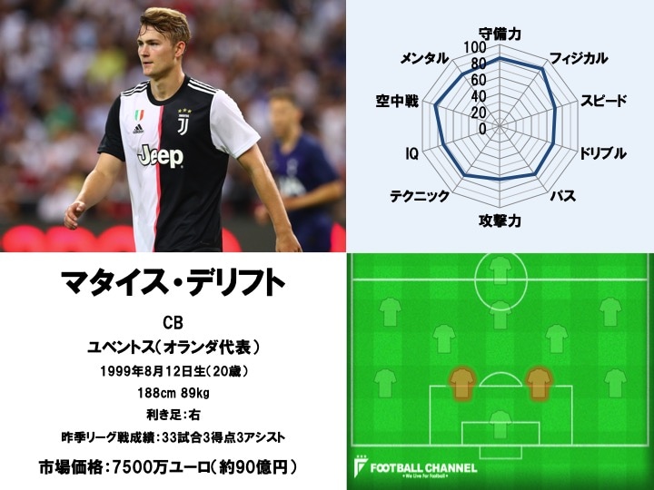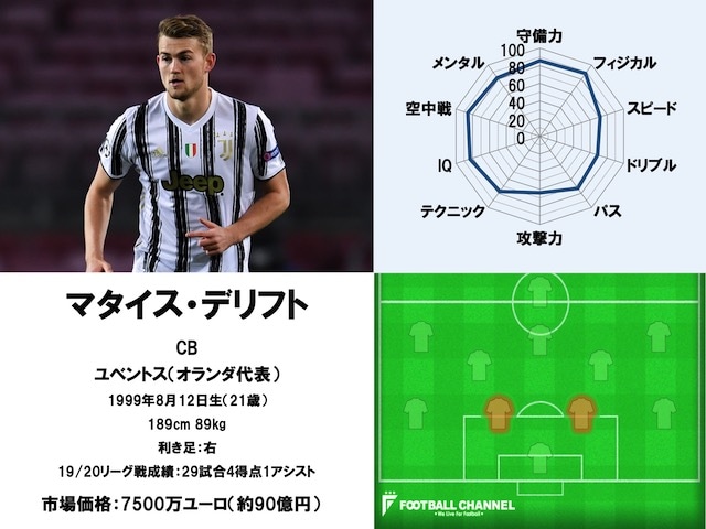 20/21サッカー選手能力値ランキング63位。DFマタイス・デリフト(ユベントス)