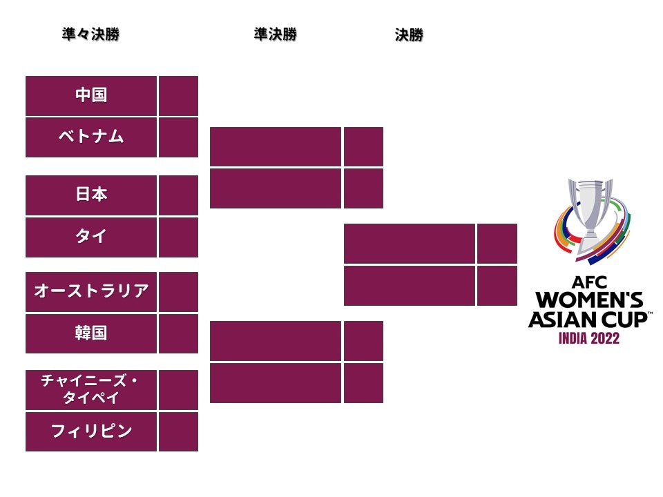 決勝トーナメント表 AFC女子アジアカップインド2022 女子サッカー なでしこジャパン(サッカー日本女子代表)