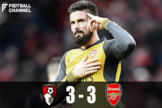 アーセナル、3点差からの怒涛の追い上げ! 好調ジルーの土壇場同点弾で引き分け