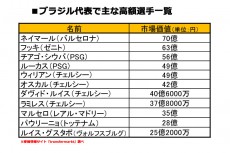 サッカー王国ブラジル、日本代表との市場価格差はおよそ400億円!