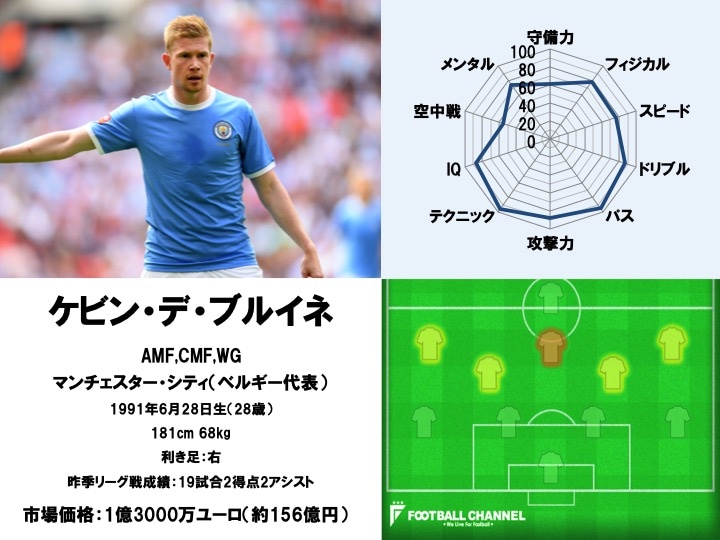 ケビン・デ・ブルイネ、そのプレースタイルと能力値、ポジションは? ペップが見出した周囲の機微をも見逃さない認知力【注目選手分析(4)】