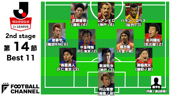 J1 2nd第14節ベスト11発表! ハットトリック達成のR・ロペスと永井らを選出