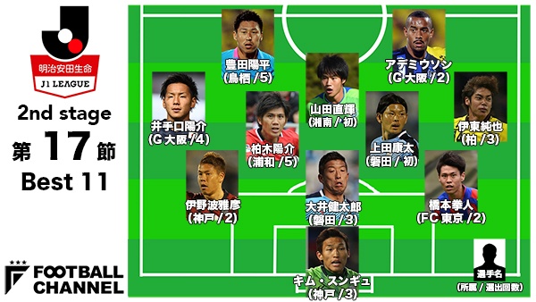 J1 2nd第16節ベスト11発表! 今季限りでJを去る森崎浩司とキム・ミヌを選出