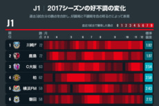 好不調の「波」から見る2017年Jリーグ。データが可視化したチームの「勢い」と「安定感」