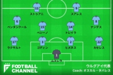 【ウルグアイ代表スタメン発表】カバーニら強力メンバーが先発。11人中10人がW杯選手