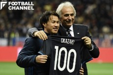 ハリル監督、代表100試合達成の岡崎に祝福のハグ&キス