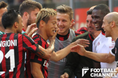 今季初得点の本田を絶賛するミラン監督「仲間が祝福したのも素晴らしかった」